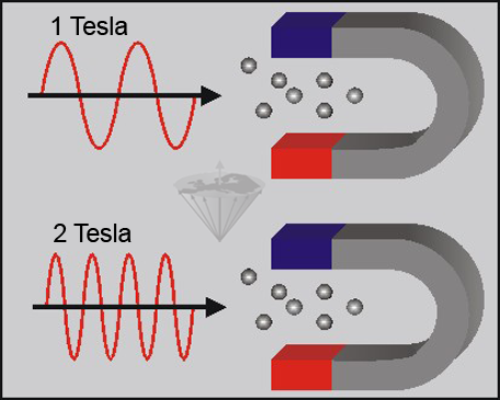 A string (the nucleus) cannot vibrate without being exposed to tension (the external magnetic field). The higher the tension, the higher will be the frequency of the vibration.
