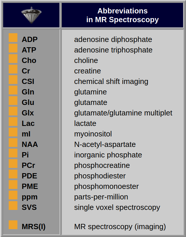 Some important abbreviations used in MR spectroscopy are listed in Table 05-01.