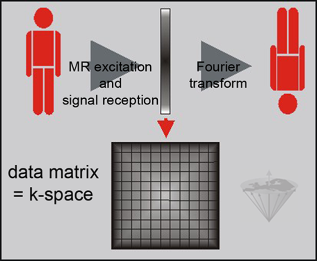 As the lens, k-space collects image raw data for Fourier transform. One of the main differences is the shape: lenses are round, k-space is rectangular. In k-space, the iris of the camera is replaced by gradient strength, in one direction for frequency-, in the other direction for phase-encoding (Figure 07-06).