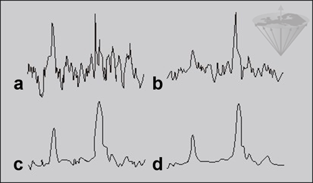 a 2; b 8; c 32; and d 128 data averages. The ‘polluting noise’ disappears slowly with higher number of averages.