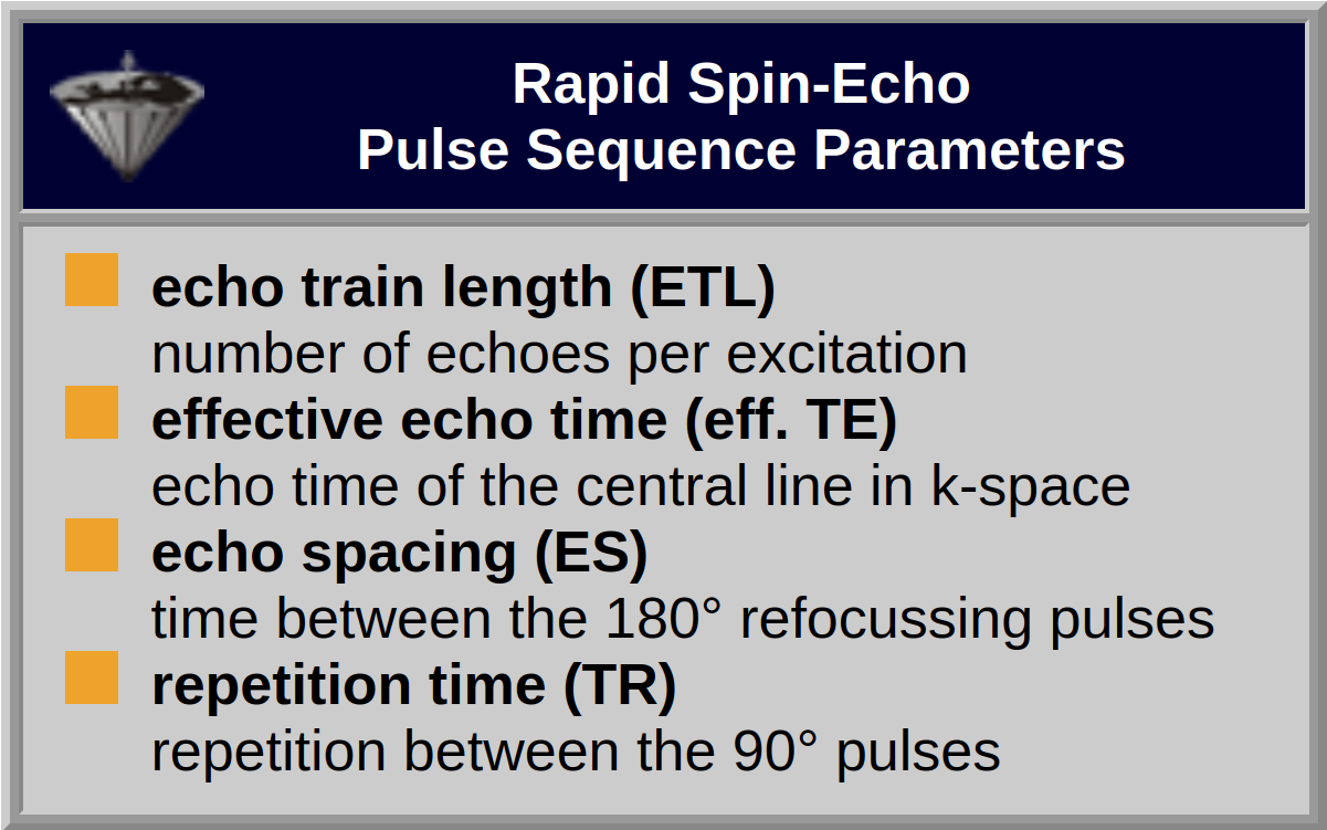 The pulse-sequence parameters of an RSE sequence are different from those of a conventional SE sequence (with the exception of TR).