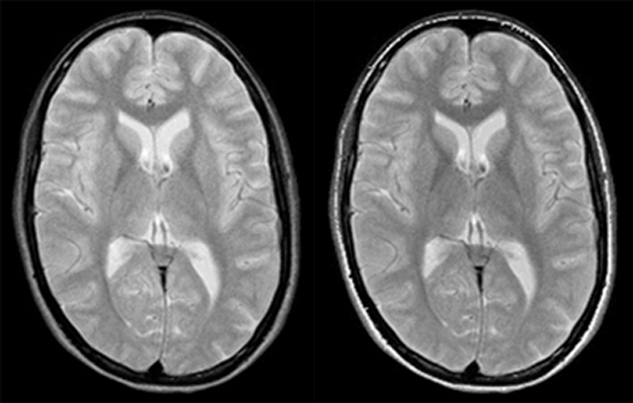 Right: SE: TE = 64, TR = 3000 ms.