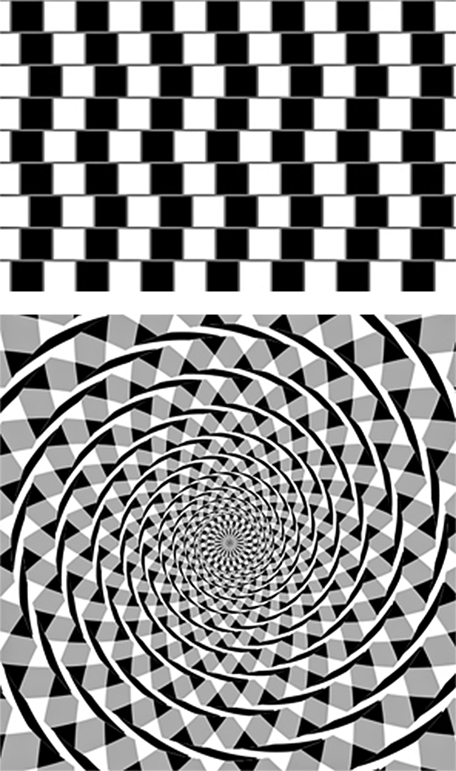 Bottom: Fraser's spiral — in reality there are only circles.