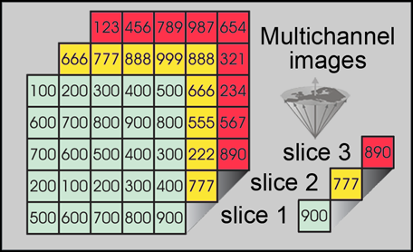 In multichannel imaging, several channels representing n different parameters can be acquired simultaneously or by consecutive procedures, leading eventually to n images of exactly the same object (Figure 15-05).