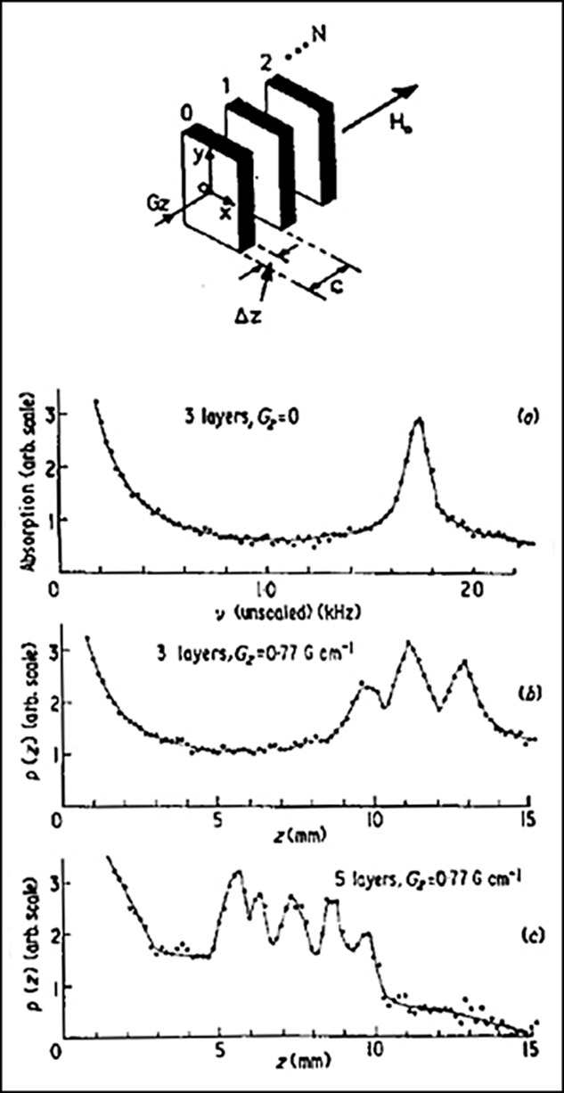 For some time in 1974 a third research ‘team’ existed in Nottingham, consisting of Alan N. Garroway (Figure 20-36). He applied weak radiofrequency pulses in the presence of a field gradient in order to achieve spatial selectivity. Next door, Peter Mansfield and his postdoctoral students were developing a related method.