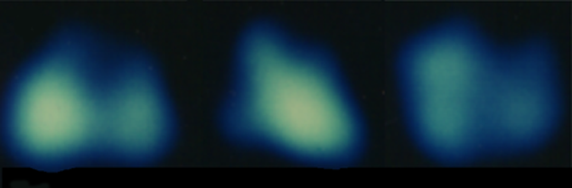 19F ventilation imaging of a dog's lung; coronal and transverse images (1982).