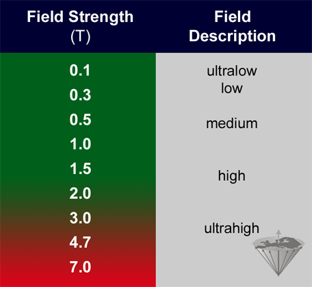 Ultralow equipment (≤ 0.1 T) is hardly used any more, most clinical machines operate at medium and high fields. At present, there is a trend towards ultrahigh research machines, operating between 3 T and 11 T (Figure 21-03) aimed at research and commercially competitive sites. At present, there is no proof that such units are of better clinical value than medium or high field machines although there are numerous claims of better "patient outcome". Manufacturers try to push them into the clinical market, although it is unlikely that they will be used in clinical settings because of their side effects and enormous prices.